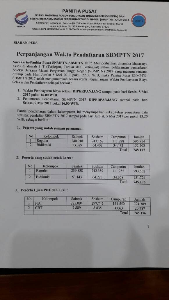 Perpanjangan Waktu Pendaftaran SBMPTN